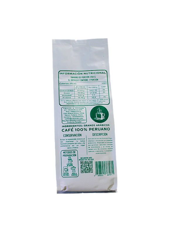 Café 100% natural, libre de químicos, colorantes y conservantes.