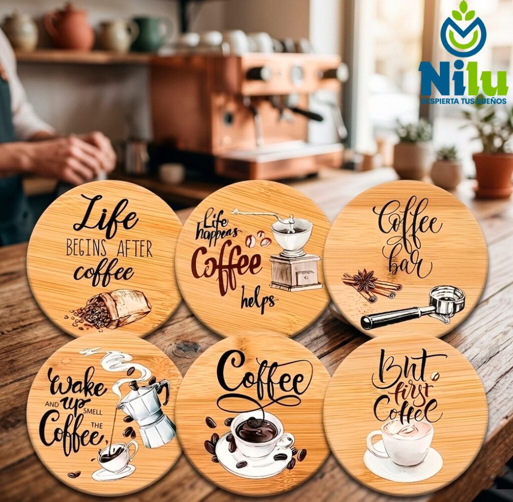 JUEGO 6 POZA TAZAS DE MADERA CAFÉ